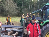 Dagen startede lidt udfodret af nattens storm, da det betød væltede træer på nogle af de veje hvor vi skulle frem med traktor, men et par morgenfriske hjælpere sørgede for det ikke gav os problemer under jagten, stormen havde ikke væltet så mange træer i såterne som frygtet så vi havde i løbet af dagen ingen problemer i vores drev.