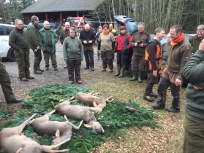 Vi havde forventet mange snepper i skoven efter nattens storm men det var ikke tilfældet, enkelte blev set, skudt efter og en enkelt leveret. Til gengæld var der meget råvildt i skoven og vi så derfro mange dyr, de fleste jægere så et elelr flere dyr i en eller flere såter. Med super god skydning fra skytterne blev der leveret 5 dyr i 5 skud og ingen forbiere, det betød at vi lukkede for afskydning af flere rådyr i de sidste par såter, så enkelte måtte nøjes med at se på de dyr der efterfølgende kom på skudhold.