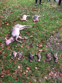 På paraden lå der 6 snepper, 1 dyr og 2 harer.